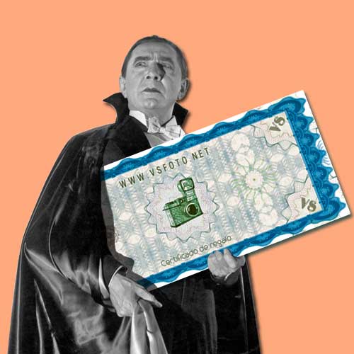 Drácula de la serie Abbott y Costello posando con el cupón de regalo, él fue nuestro primer beneficiado allá por el año… (dato pendiente)